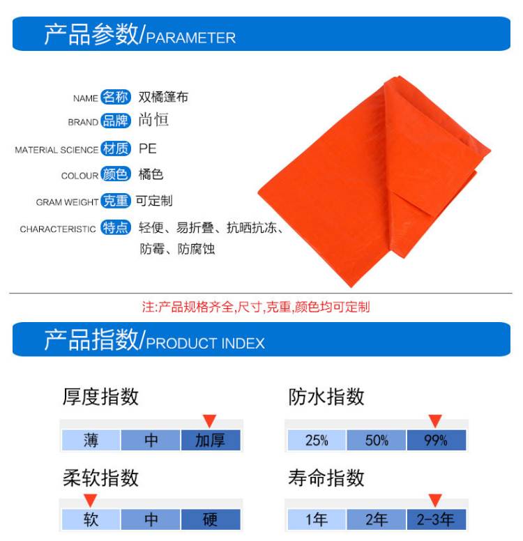 雙桔色PE防水篷布產(chǎn)品規(guī)格參數(shù)