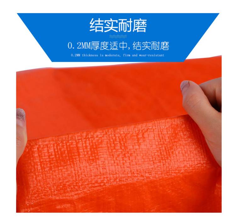 雙桔色PE防水篷布結(jié)實(shí)耐磨,0.2mm厚度適中,結(jié)實(shí)耐磨